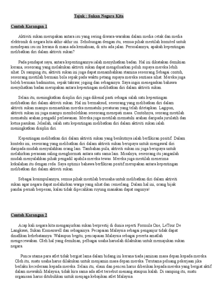 Contoh Karangan SPM MANFAAT DASAR IMURID 1SUKAN Dasar 1Murid 1Sukan. Contoh Karangan PT3 Sukan Lasak Anda amat meminati sukan lasak seperti bebasikal dan mendaki gunung. Dah ok karangan yang.